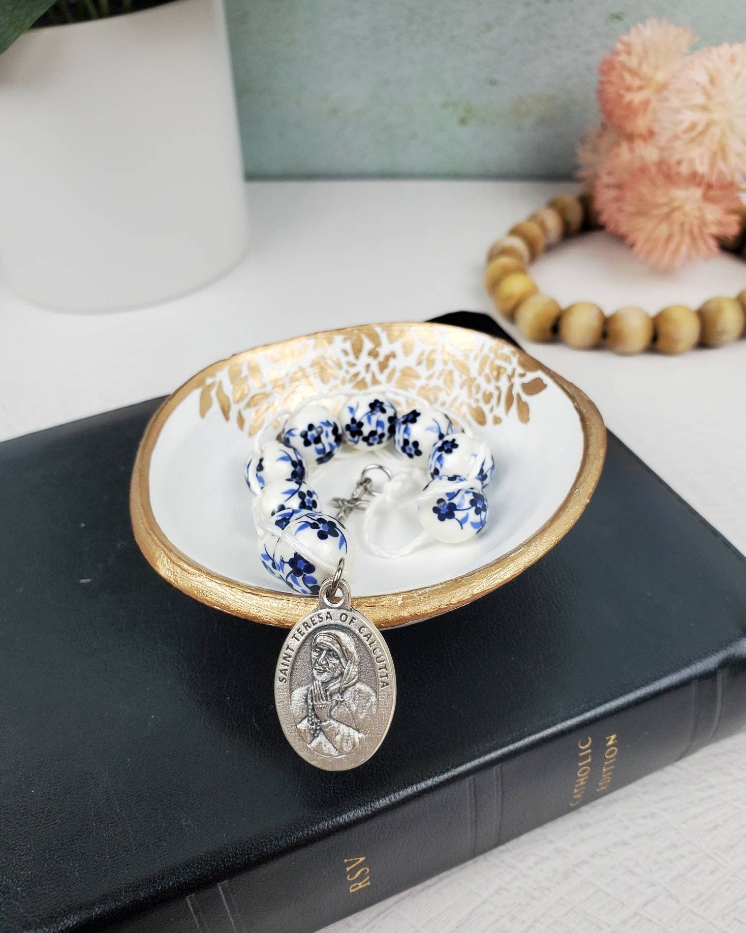 Mother Teresa Flying Novena Beads in Ceramic Blue Flowers Set of 9 ceramic beads to help you pray a "flying novena" like St. Mother Teresa! Whenever someone would ask Mother Teresa for prayer, she would offer what she lovingly called a "flying novena" as soon as possible. The novena is 9 Memorares said in a row (either immediately or throughout the day as you're able,) offered for a particular intention.